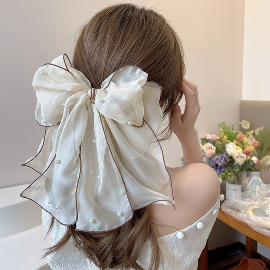This product has multiple variants. The options may be chosen on the product pageElegant Lace Bow Hair Clip with Pearl Ribbon