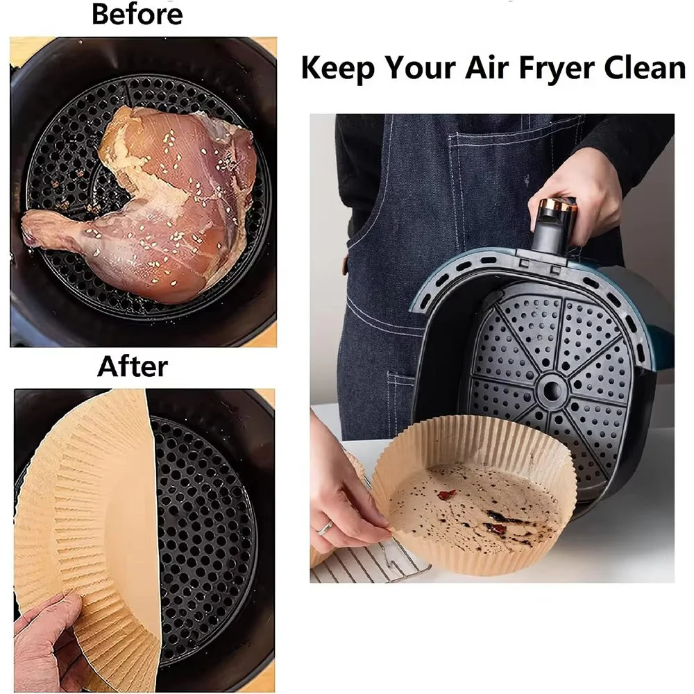 The 9 inch air fryer liners fit most 8-12 quart air fryers. Food never sticks, and your basket stays spotless. This makes post-cooking cleanup simple. These liners are made from premium, food-grade materials, so every meal is safe and worry-free.
