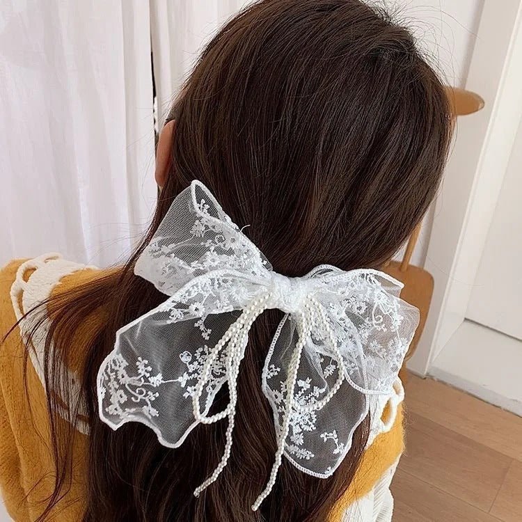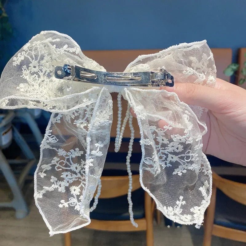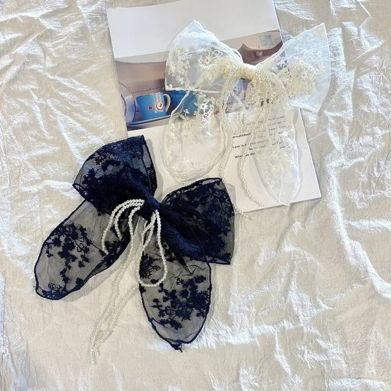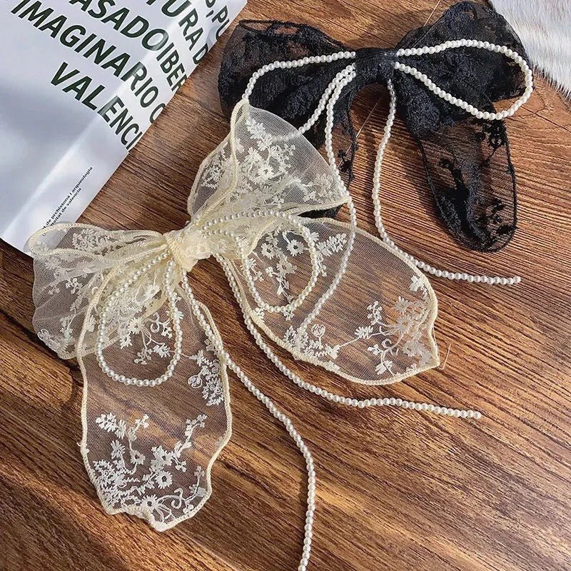 This product has multiple variants. The options may be chosen on the product pageElegant Lace Bow Hair Clip with Pearl Ribbon