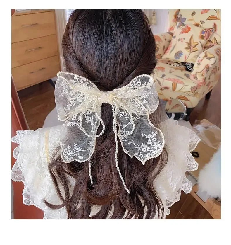 The lace bow hair clip suits any hair type. It holds securely without pulling or snagging. Clip it to a ponytail or use it for half-up styles. You can wear it with loose hair for a dreamy look. The sturdy construction ensures long-lasting use. The clasp grips hair gently and stays in place all day.