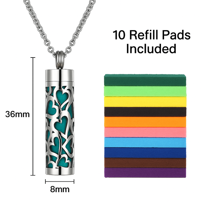 Livsy Stainless Steel Aromatherapy Necklace – With 10 Felt Pads